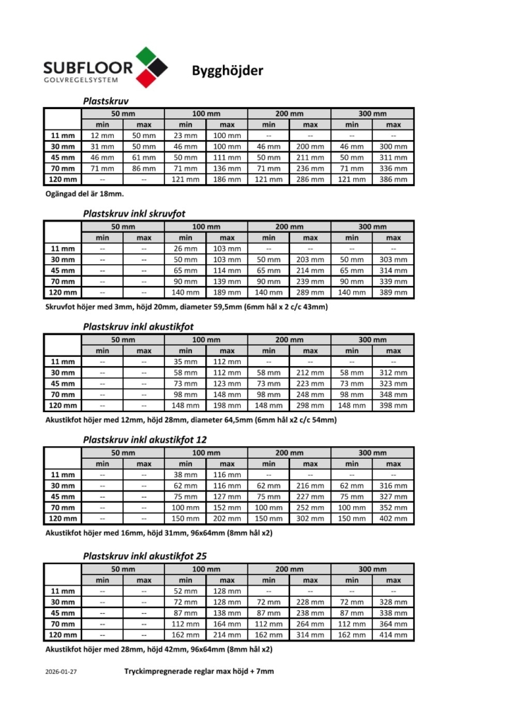 Med SubFloor mängdberäkning hjälper vi dig att räkna materialåtgång på ditt projekt. Du kan räkna på både inomhus och utomhus och du guidas genom alla olika val så som bygghöjd, ventilation, reglar, skruv och infästning. När du gjort dina val kan du ladda ner dokumentet eller direkt begära en offert.