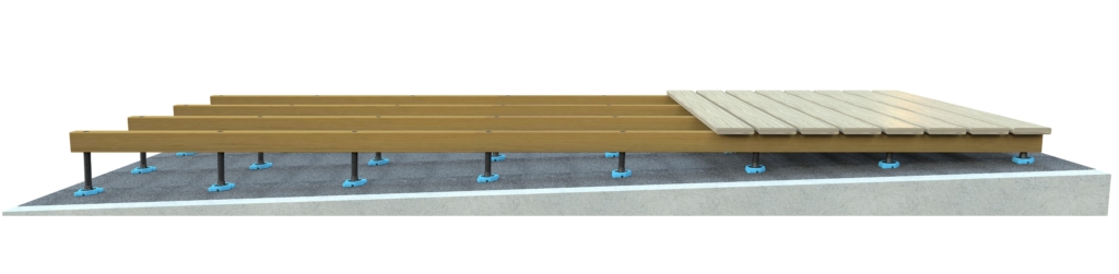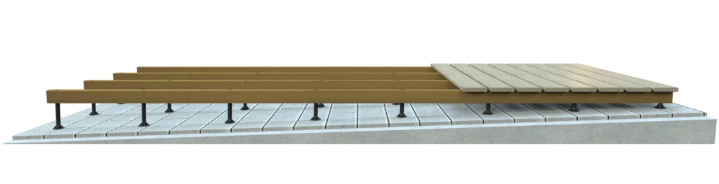SubFloor passar utmärkt för terrasser, balkonger, takterrasser och gårdsmiljöer där underlaget inte är helt plant. Konstruktionen ger lång livslängd, hög stabilitet och ett snyggt slutresultat – oavsett underlagets lutning.
